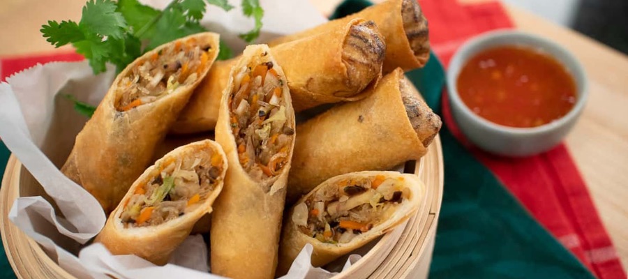 Une fois roulés, ils sont frits dans l’huile pour une croustillance ultime. Ils sont ensuite servis accompagnés d’une petite sauce, soit aigre-douce, soit pimentée, soit aux cacahuètes. Ils plaisent aux petits comme aux grands et sont un encas parfait pour commencer un repas.