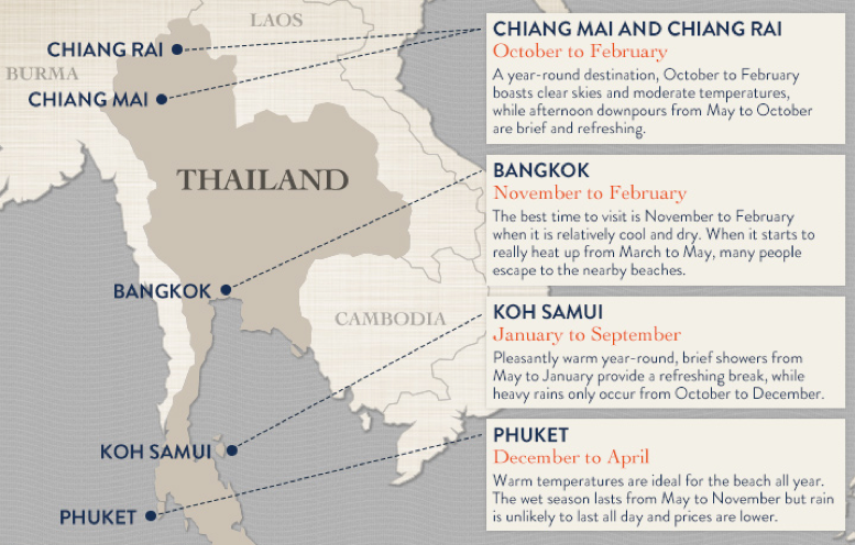 Il n’y a pas de pire moment pour visiter la Thaïlande puisqu’il y a toujours une destination plus agréable qu’une autre en fonction des périodes.
